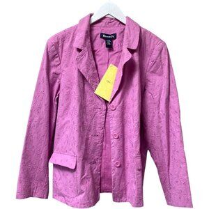 DENIM & CO. Jacket Size Large Purple Lilac Embroidered Blazer Cotton NWT