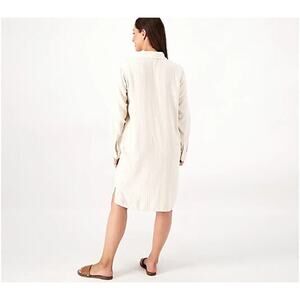 DENIM & CO. NATURALS NEW $66 Linen Blend Button Front Shirt Dress Pockets Small
