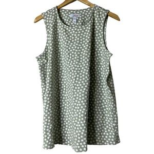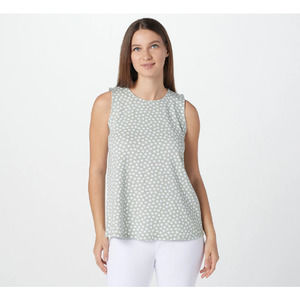 DENIM & CO Printed Jersey Round Neck Swing Tank Desert Sage XS