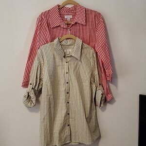 DENIM & CO. ROLL SLEEVE GINGHAM BUTTON FRONT WOVEN SHIRT L BUNDLE 2