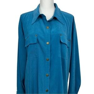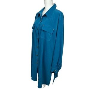 DENIM & CO Women’s Tunic/Blazer Button Top Sz 1X Teal Color Pockets Long Sleeves