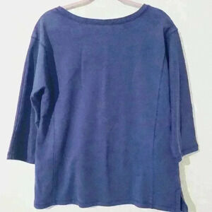 DENIM & CO size M Essentials 3/4 Sleeve Scoopneck French Terry Top Blue