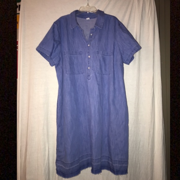 Short sleeve denim dress. NWOT. Can be dressed up or worn casual! Super comfortable