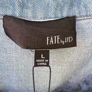 DENIM RUFFLE EMBROIDERED BUTTON DOWN VEST TOP WITH POCKETS SIZE LARGE NWT