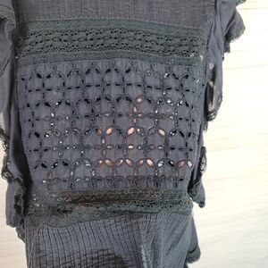 DENIM & SUPPLY NAVY BLIE SHORT SLEEVE TIERED RUFFLE TOP, SZ MEDIUM