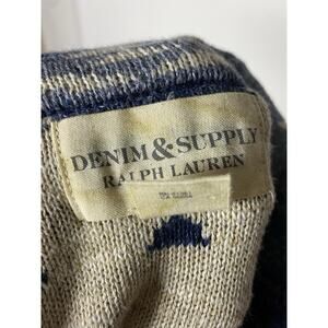 DENIM & SUPPLY RALPH LAUREN Navajo Shawl Collar Cardigan Men's Large Cotton Blue. Button closure. Geometric/aztec design. Pockets. The tag has staining but the sweater is in good shape.