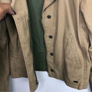Denim & Supply Ralph Lauren tan zip and button front jacket, nicely lined.