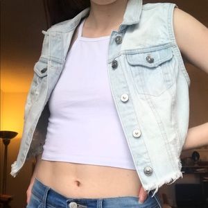 Super cute light wash denim vest from h&m. Great condition! Lightly distressed. Size 8 but would fit a small
