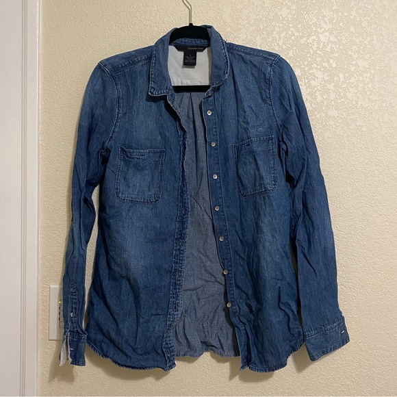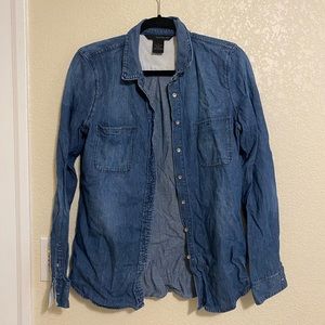 denim button up. gently used. please ask questions and no returns loves 💕