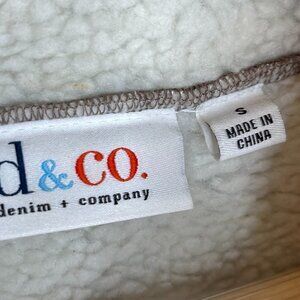 denim&co brown fleece and sherpa lined jacket. Good condition. smoke free. I have a light blue one of these as well for sale. Underarm to and underarm and hips approx 20.5. Length 32 . Hits at mid thigh depending on your height