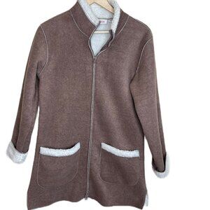 DENIM&CO brown fleece and sherpa lined pocket zip up warm jacket coat