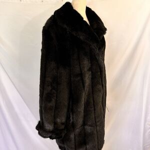 DENNIS BASSO Faux Fur Coat 1X Plus NWT Black Mid Length Jacket Winter Overcoat