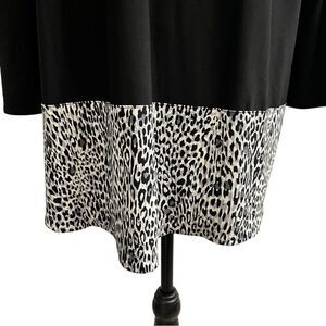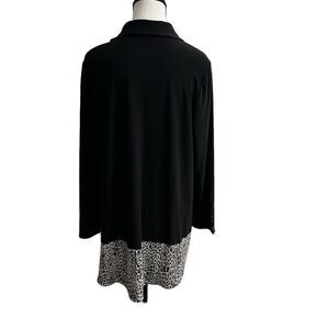 DENNIS by DENNIS BASSO Black Italia Knit Front Button Cardigan W/Animal Print Hem