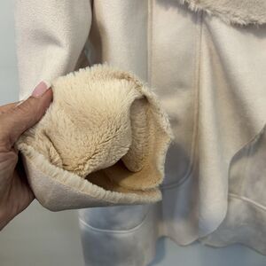 DENNIS by DENNIS BASSO WOMEN'S Medium CREAM FAUX SUEDE FUR BUTTON COAT Mob Wife