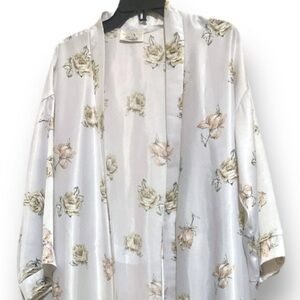 DENTELLE Silky Printed Robe Fine Luxury Belted Full Length Ivory Floral Black N…