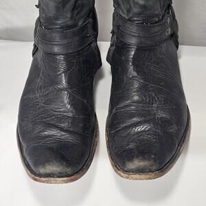 DENVER BOOTS Black Leather Zipper Boots Cross Biker Mens Size US 10.5 Square Toe
