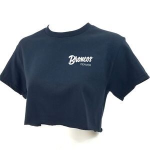 DENVER BRONCOS Double Script Retro Logo BLACK NFL "Cropped" Crop Top Football Tee. Size: S, M, L and XL