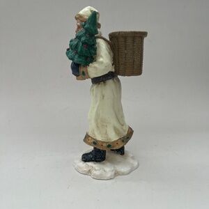 Vintage resin Santas that hold a taper candle in their toy sack. The Red Coat Santa shows a repair to the hand holding the staff but it is barely visible and does not take away from the beauty. The Blue Coat and White Coat Santa's are in like new condition. They measure approx 8" H. Adorable in a grouping and a great addition to any Santa collection.