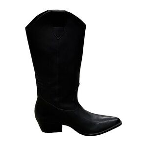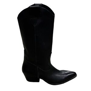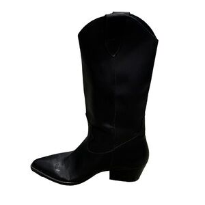 DEPP Black Pointed Toe Block Heel Cowboy Boots Size 38 Women's