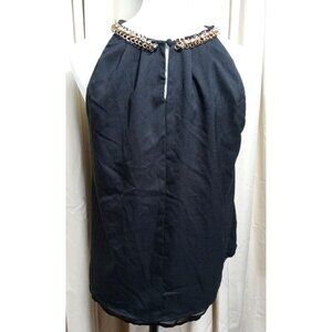 This elegant DEPRI Black Dressy Halter Blouse, size small, features a beautiful beaded collar. A perfect addition to your wardrobe for a classy look.