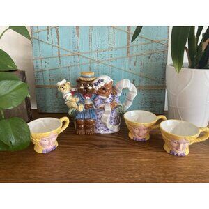DEPT 56 Goldilocks 3 Bears Handpainted Ceramic Teapot 3 Cups STORYBOOK READ
