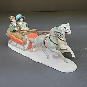 The DEPT 56 Heritage Village #6511 Sleighride Figure is a porcelain collectible from the Christmas Village collection by Department 56. This figurine depicts a scene of a sleighride in a quaint village setting, perfect for adding a touch of nostalgia to your holiday decor. Ideal for collectors or those looking to enhance their Christmas display with charming and detailed porcelain pieces, this Heritage Village figure is sure to bring a festive and timeless touch to your home during the holiday season.