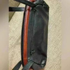 Derek Alexander black leather purse with brown trim. 15”x7”x3”