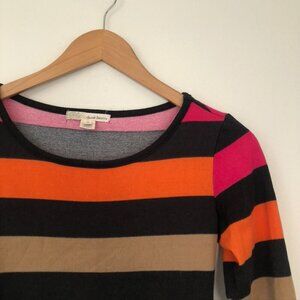 - tan brown / black / pink / orange horizontal striped sweater / shift dress