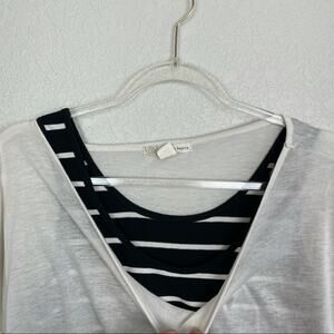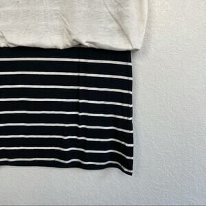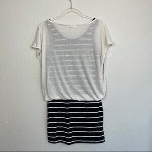 Features: black & cream striped fitted dress with cream semi-sheer oversized sewn in top, this dress is 1 piece, but appears as 2, soft & stretchy