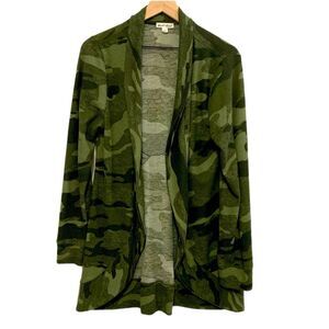 DEREK HEART Cardigan Women’s Large Green Camouflage Open Front Waterfall