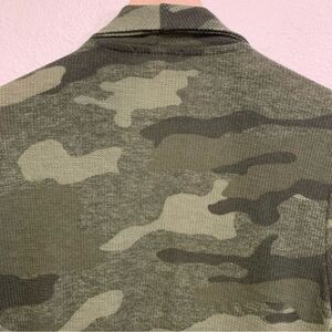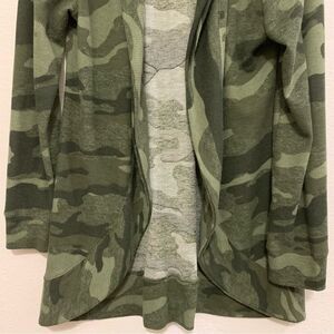 DEREK HEART Cardigan Women’s Large Green Camouflage Open Front Waterfall.