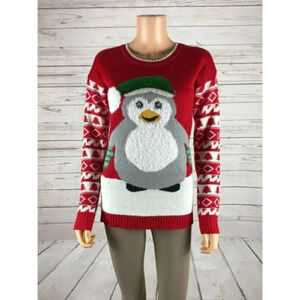DEREK HEART Penguin Ugly Christmas Sweater MEDIUM