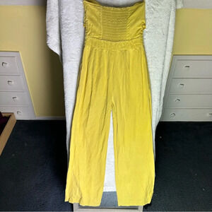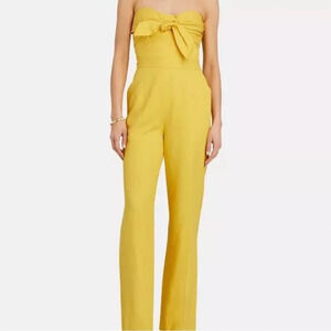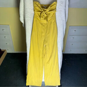 DEREK LAM 10 CROSBY Alene Strapless Wide Leg Jumpsuit Tie Front Yellow 2 Linen