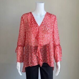 DEREK LAM 10 CROSBY Long-Sleeve Floral-Print Silk Chiffon Blouse - 10