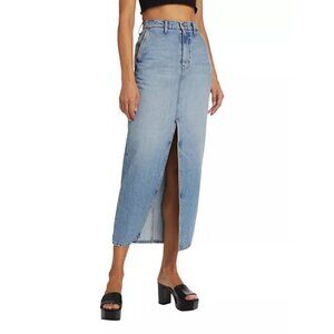 💕DEREK LAM 10 CROSBY Lu High Rise Denim Maxi Skirt Sutton Vintage Blue 28 NWT