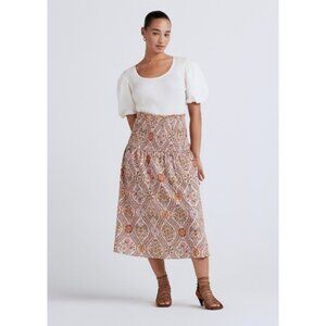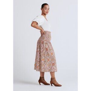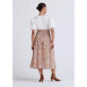 💕DEREK LAM 10 CROSBY Madani Linen Blend Smocked Skirt Light Khaki Floral 12 NWT