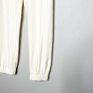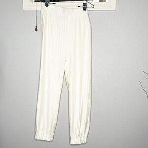 A stylish pair of pleated pull-on pants for everyday versatility. Pull on waist. Size 10, off white color. jogger bottoms