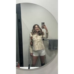 DEREK LAM 10 CROSBY Off-White Twill Wool Blend Jasper Utility Blazer Jacket in size 4 is a sophisticated blend of modern design and classic tailoring. Crafted from a luxurious wool blend twill, this blazer exudes elegance with its off-white hue and utility-inspired details. The structured silhouette features clean lines, functional pockets, and a tailored fit, making it a versatile addition to any wardrobe. Perfect for work, evenings out, or elevating casual ensembles, this blazer seamlessly combines style and practicality. A timeless piece for any fashion-forward wardrobe.