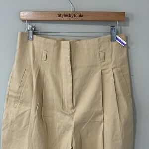 DEREK LAM 10 CROSBY Pant Linen blend wide leg pants Beige Pockets Sz 12 NEW