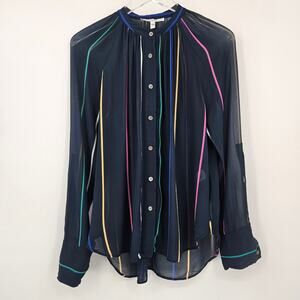 DEREK LAM 10 CROSBY Rainbow Striped Mandarin Collar Blouse Size 8