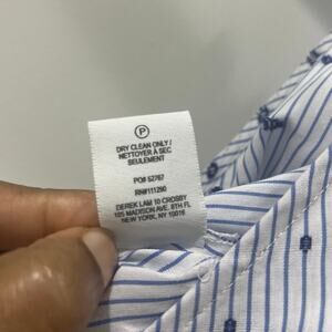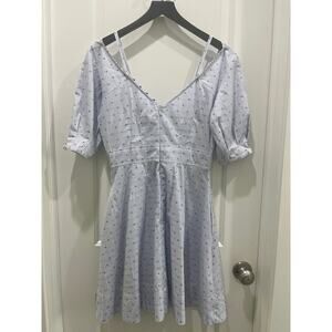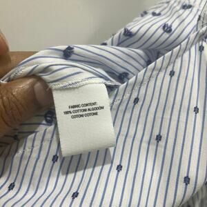 DEREK LAM 10 CROSBY White Blue Striped Embroidered Pin Dots V-Neck Dress 6