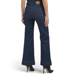 Brand New Color: multi waist rise: 11.5in, horsebit details, brand logo patch, contrast stitching, fabric provides stretch regular length, wide leg, 4 pocket style high rise waist zip fly with button closure inseam: 31in, taken from size 4 cotton/elastane imported machine wash