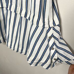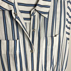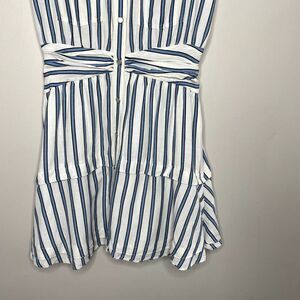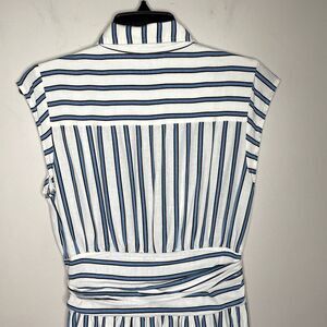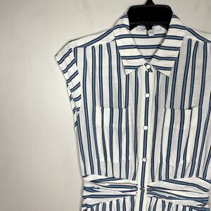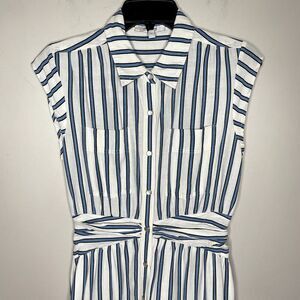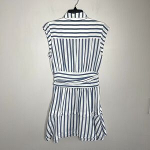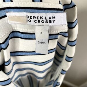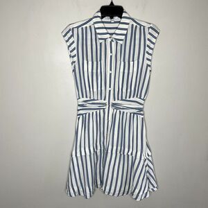 DEREK LAM 10 Crosby Dress Womens 6 Blue Striped Shirtdress Snap Front Cap Sleeve