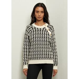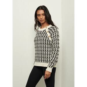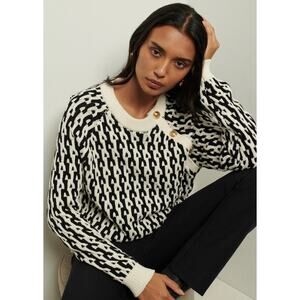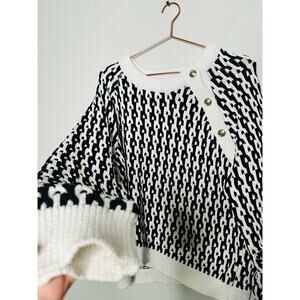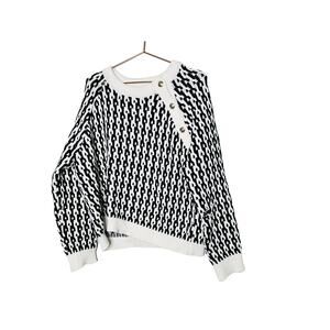 DEREK LAM 10 Crosby Sawyer Black Ivory Long Sleeves Gold Button Sweater Size XXL