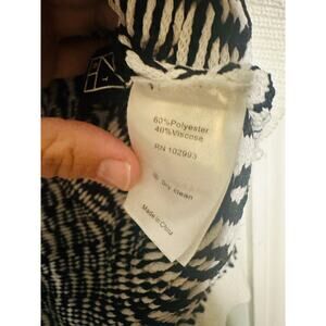 DEREK LAM 10 Crosby Sawyer Black Ivory Long Sleeves Gold Button Sweater is a chic and sophisticated knit that effortlessly blends classic and contemporary elements. This sweater features a striking black and ivory color block design, adding visual interest and contrast. The long sleeves provide warmth, while the luxurious gold buttons along the shoulder elevate the piece with a touch of elegance. Sized XXL, this sweater is designed for a comfortable and relaxed fit, making it both stylish and easy to wear.