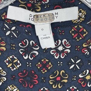 DEREK LAM 10 Crosby Top Womens 0 Black Red Print Button Up Blouse 100% Silk
