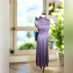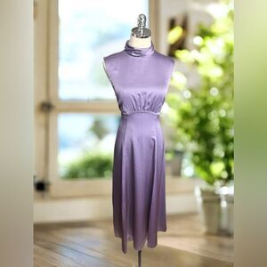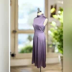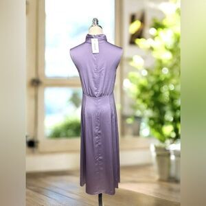 Derek Lam 10 Crosby's Tate midi-dress is finished in a sleek satin and shirred detailing at the waist. Tailored with a mock turtleneck, this sleeveless style evokes a sophisticated design.