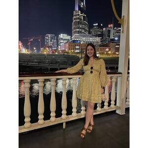 The DEREK LAM 10 X RTR yellow floral mini dress is a vibrant and feminine piece crafted from 100% cotton for breathable, all-day comfort. Designed in collaboration with Rent the Runway, it features a flattering V-neckline and an hourglass silhouette that accentuates the waist beautifully. The cheerful yellow floral pattern adds a fresh, seasonal charm, perfect for warm-weather outings or casual daytime events. With its mini length, this dress offers a playful yet polished look. The structured cotton fabric provides shape while keeping the feel light and easy. A size 42 fit, it delivers effortless elegance with a bold, sunny flair.