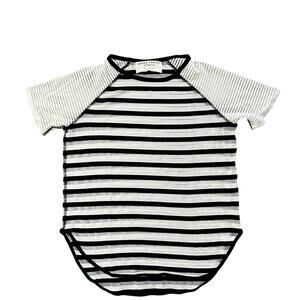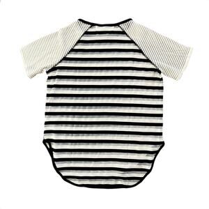 DEREK LAM 1OC ATHLETA Stripe Sheer Raglan Sleeve Shirt Black White Small