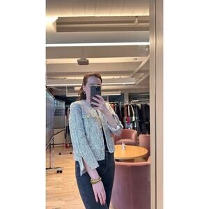 DEREK LAM COLLECTIVE Gray Gold Button Front Zip Up Sleeve Tweed Jacket size 40